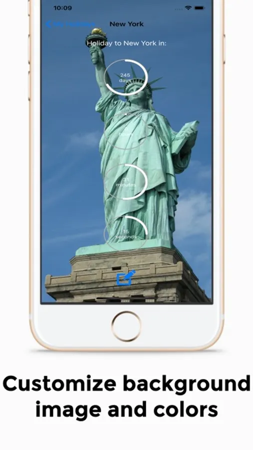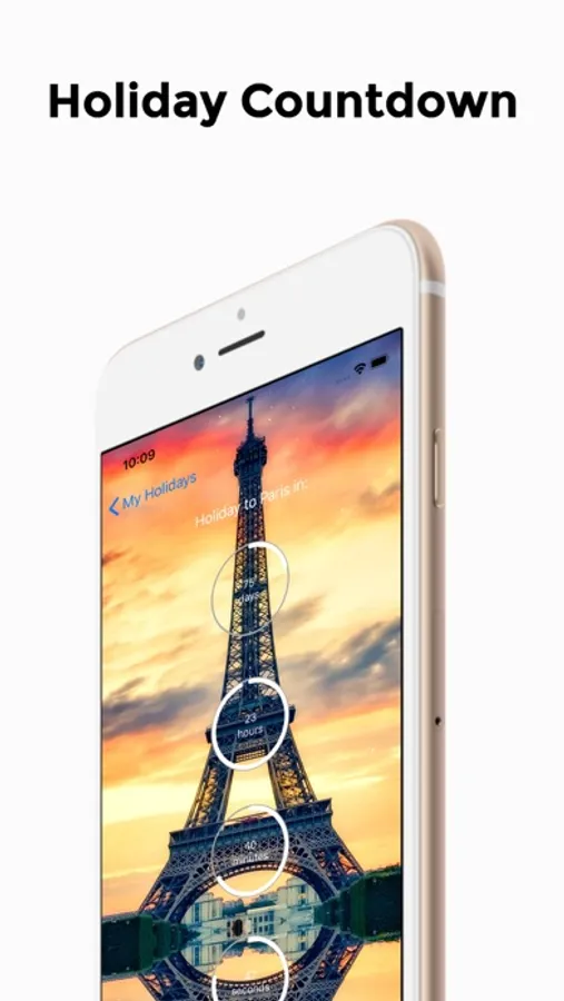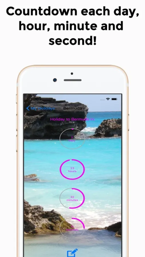 Count down the days, hours, minutes and seconds to your vacation / holiday with this app that will give you an exact time until your special day! Also customize the countdown by setting your own image in the background, and set the text color.