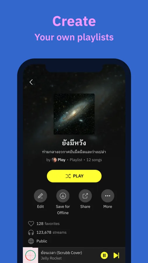 Fungjai is a music streaming application. It is the FREE music player that gathers songs in both old and the latest songs from various music genres; Thai pop, hip-hop, R&B, electronic, rock, dance, as well as indie and unsigned music. Play music for free. Download albums, playlists, or songs that you liked and play offline, wherever you are. Discover new music with recommended music playlists from Fungjai’s editors that fit your moods, activities, and tastes. Enjoy live audio sessions, find new interesting songs, share your favorite hits and listen to music with friends in real-time.