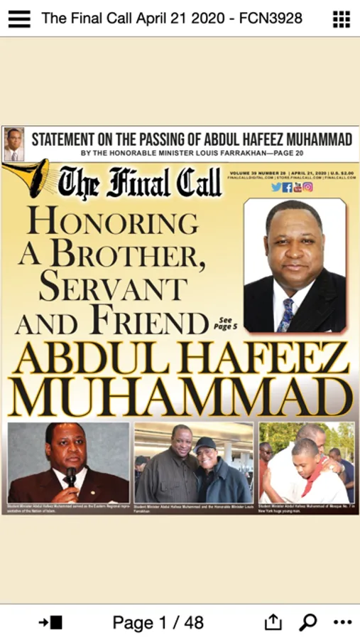 The Final Call Digital Edition! Read each week's edition of The Final Call anytime, anywhere on your computer, tablet or smartphone. The Final Call Digital Edition contains the all the articles of the print edition with additional interactive features including downloads of Final Call editions for offline reading, easy swipe browsing of pages, text searches, adding your own notes and more.