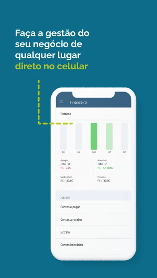 Além disso tudo, você ainda tem disponível vários relatórios otimizados com gráficos, controle de permissões e acesso rápido aos menus. Todas essas funcionalidades em um app leve, moderno e fácil de usar.