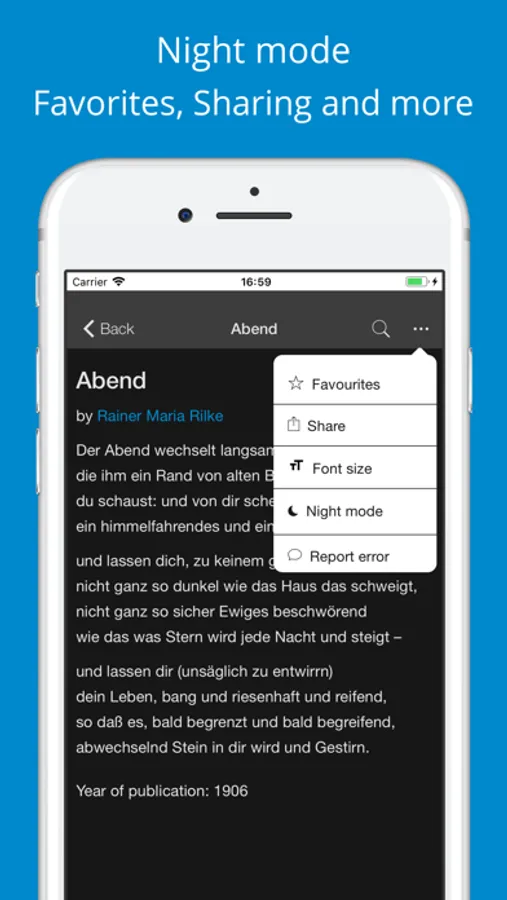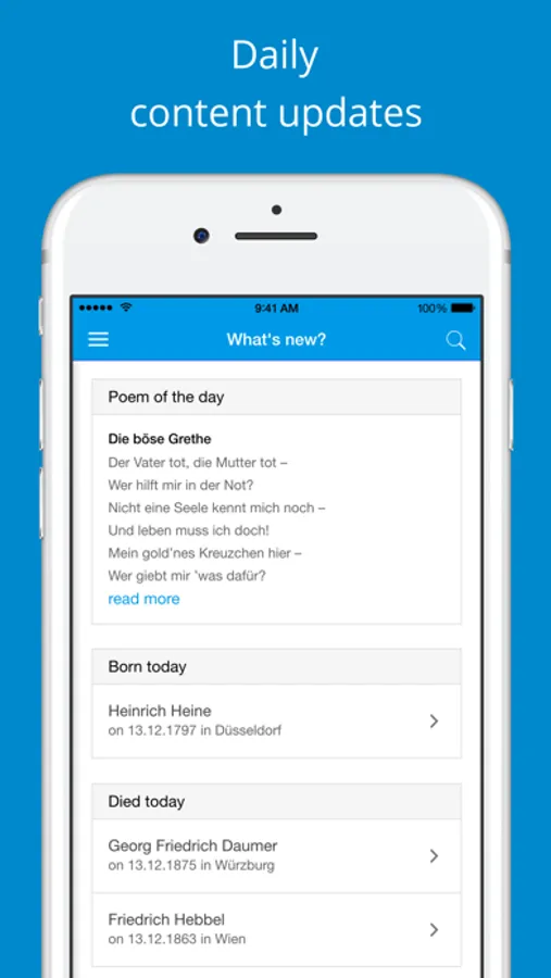 We are constantly adding new features to the German Poetry app and we’re looking forward to your feedback and ideas for improvements.