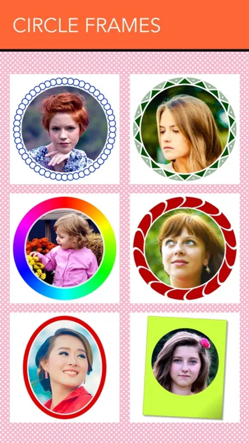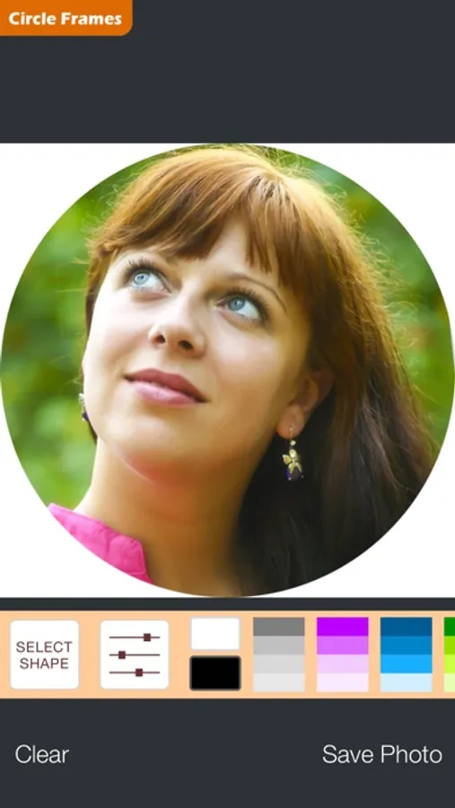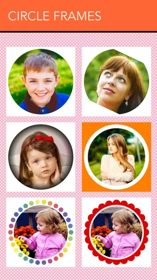 Pick a photo from device photo album, and then choose one of the various circle frames. You can customize the geometry of the selected frame by playing with touch sliders. Finally, save the result (which is a single photo inside a circle frame) to photo album.