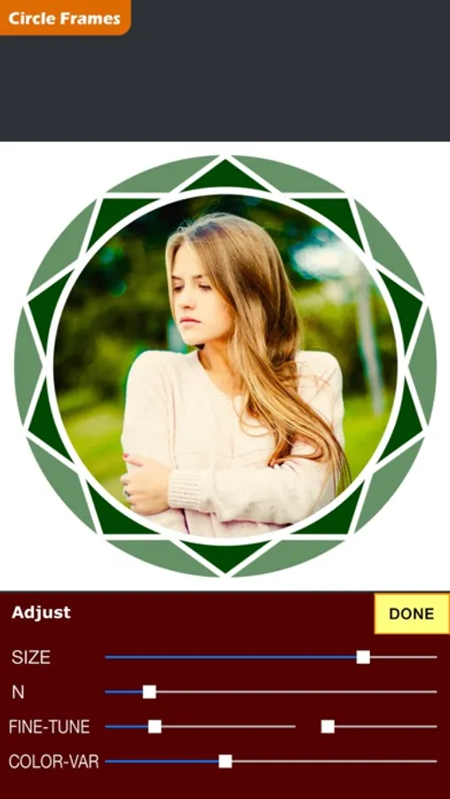 This app offers a variety of circle frames. And adjusting the geometry is possible for all of them.