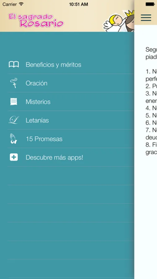 Kubo te trae la nueva versión de El Sagrado Rosario (La oración que más pidió la Santisima Virgen Maria en sus apariciones a los pastorcitos de Fatima), con nuestra aplicación conocerás los beneficios, méritos y las quince promesas de la Virgen a quienes recen el Rosario, también aprenderás los misterios y las letanías de la Santísima Virgen, reza con nosotros.