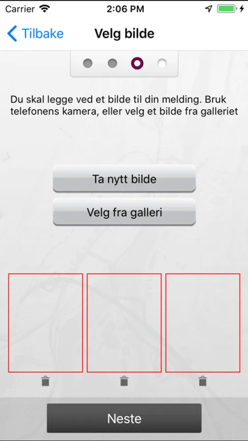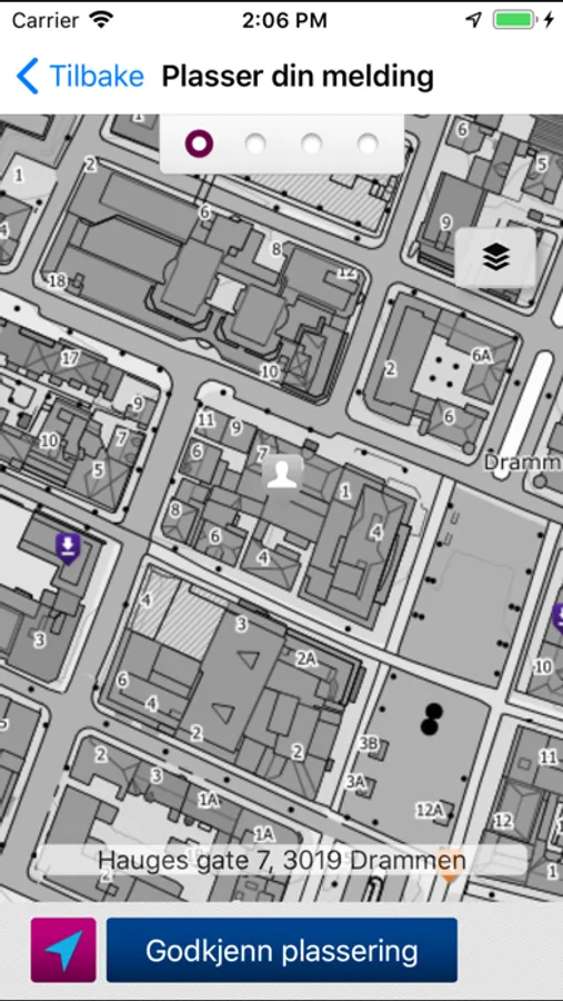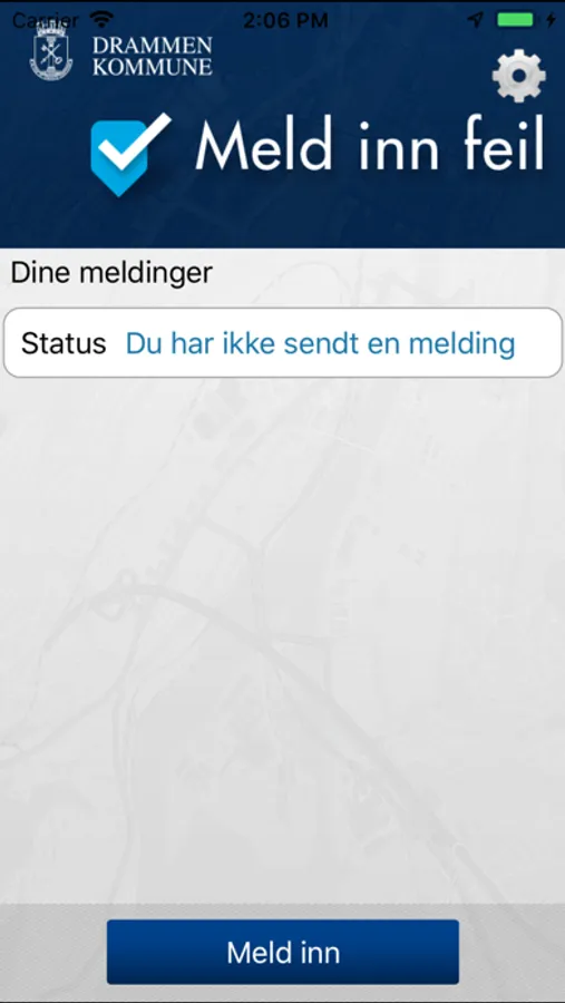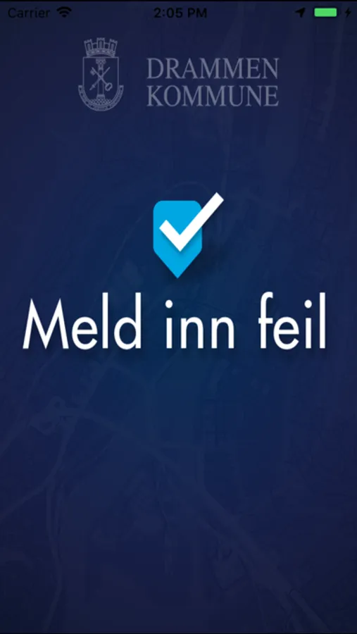 Velkommen til Drammen Kommunes nye APP. Denne er til for at du kan gi en melding på feil og mangler i Drammen kommunes gater, parker, stier og idrettsanlegg.