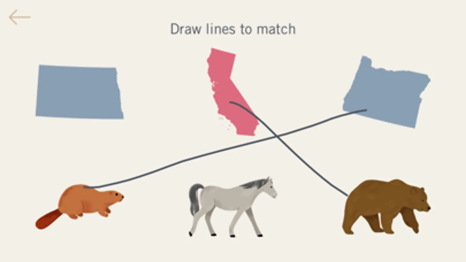 In a series of engaging activities, we match the animals to their associated states, through this matching exercise.