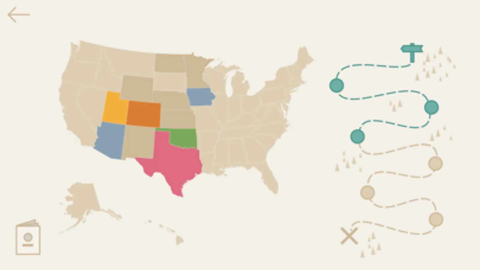 Learn the names, shapes, location, and animals of each state through puzzles, challenges, and tracing exercises with this educational app for iPhone and iPad.