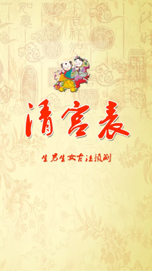 清宫表由两部分构成,横坐标为怀孕月份,从1月到12月,纵坐标为年龄,女性年龄是以农历虚龄(即真实年龄加1岁)算,而怀孕月份即是受孕的那个月份,当然亦是以农历算,本应用不受时间年份限制.