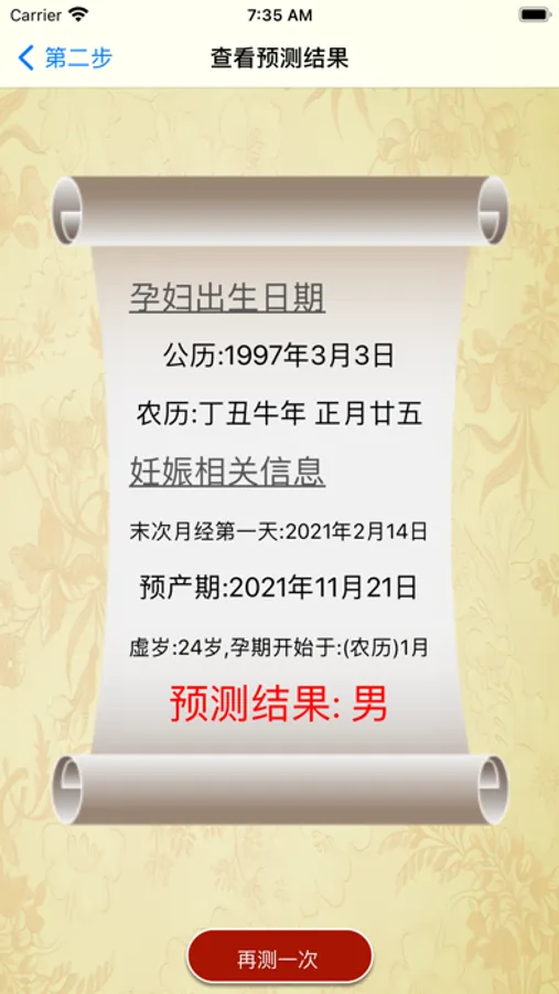 注:此软件使用清宫表传统方法计算,结果仅供参考.