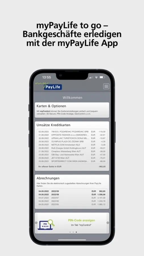 Um diese App nutzen zu können, benötigen Sie eine PayLife Karte.