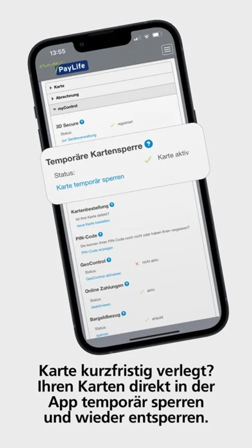 - Endgültige Kartensperre bei Verlust oder Diebstahl
