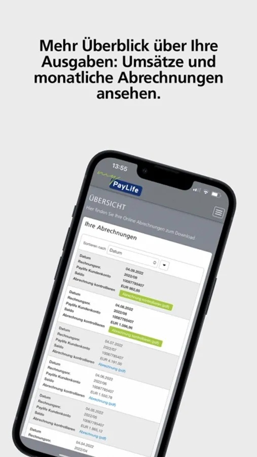 Die myPayLife App bietet alle Funktionen des Serviceportals http://my.paylife.at und bietet zudem noch folgende Services:
