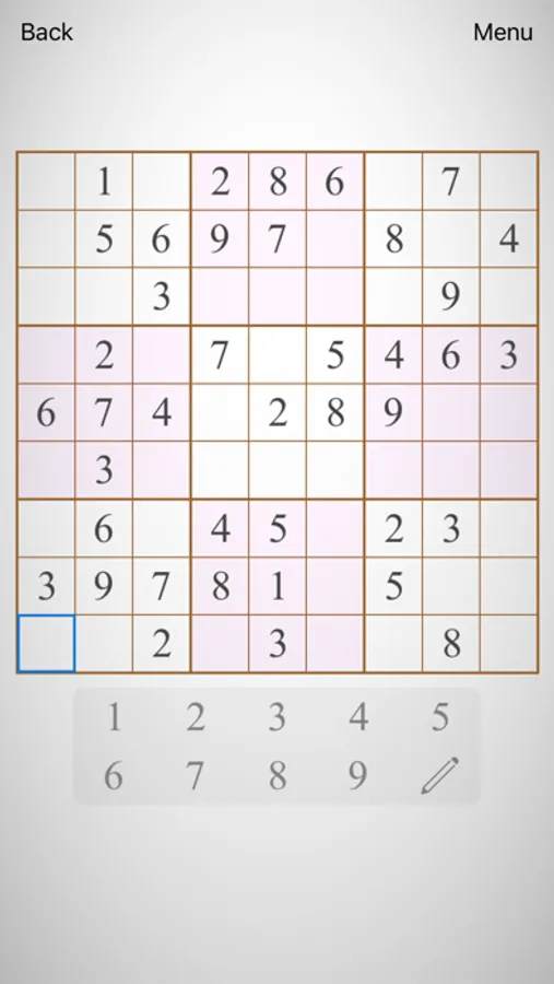 The aim of the game is to place 1 to 9 into each grid cell so that each number can only appear once in each row, each column and each mini-grid.