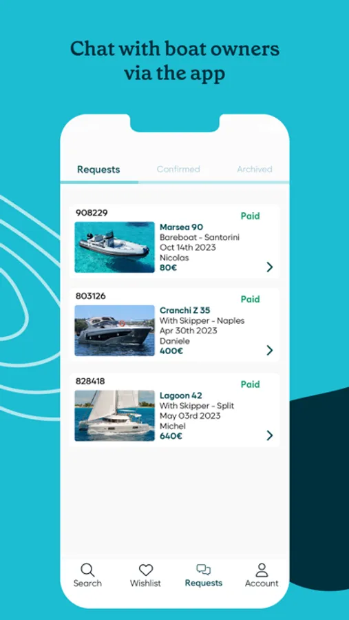 The app will guide you through the electronic signature of the contract, which will be directly sent to SamBoat. At the beginning and end of the boat rental, you will receive a copy of the contract via email. For remote ports without network coverage, the rental request can be preloaded, and the rest of the contract can be completed offline. Our app will wait for network coverage to send the contract.