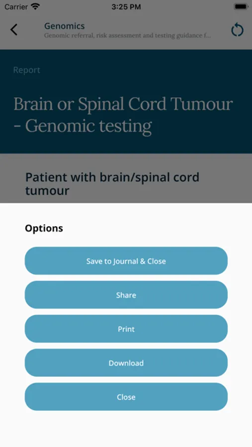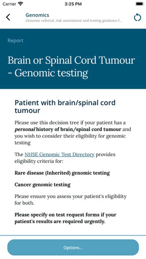 The application allows users to access up to date clinical guidance, at the ‘point of care’, and delivers a time-efficient mechanism to instigate genomic evaluation and onward referrals, where necessary.
