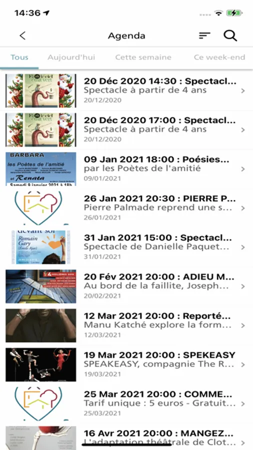 Liste des fonctionnalités de l’application
