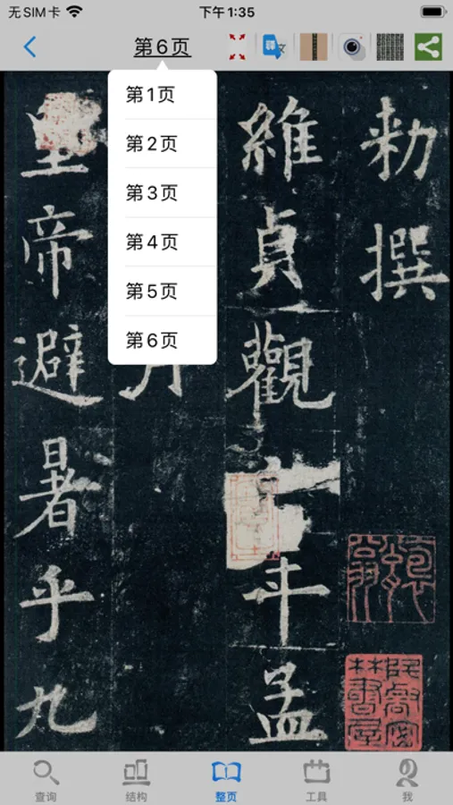 15,所有“单字放大页”可存储原碑帖字,也可加存手描临摹笔迹;