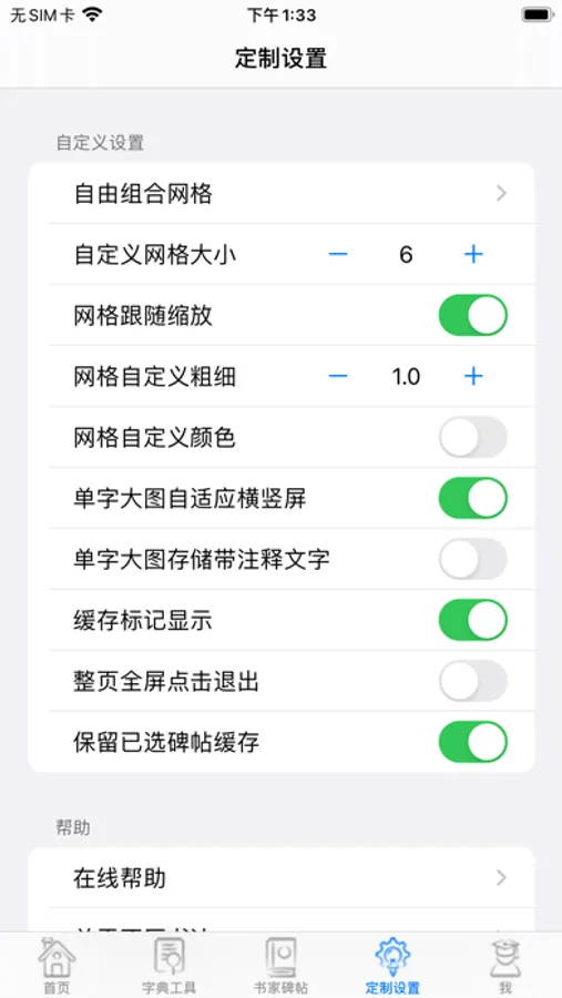 11,放大显示提供米字格,九宫格等11种选择,并提供个性化定制网格功能(在工具页);