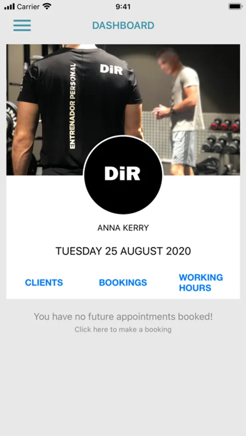 The DIR PRO app enables DIR trainers to manage their Bookings, Clients and Working Hours. Trainers can make sure they know what bookings have been made for them, who should be attending and also who has shown up in club ready for their session.