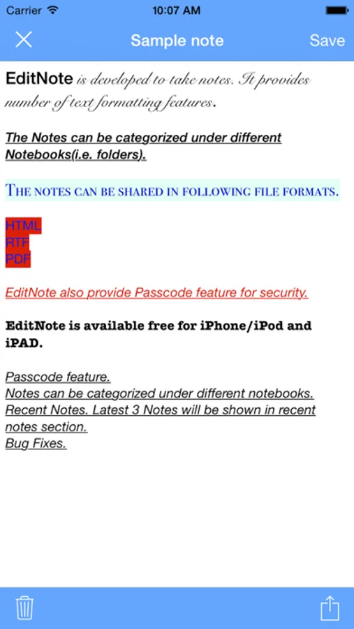 EditNote is developed to take notes. It provides number of text formatting features.