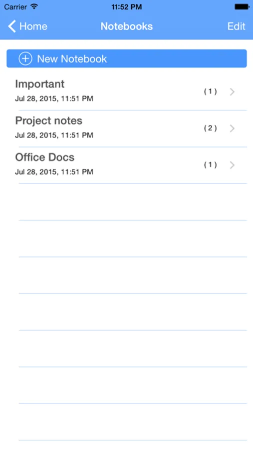 The Notes can be categorised under different Notebooks(i.e. folders).