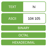 Easily convert text between different bases and encoding types using this lightweight, simple and fast app. Supports: * Plain Text * ASCII/Decimal * Binary * Hexadecimal * Octal * Base64