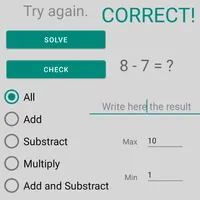 Join the fun and practice math with our app! Perfect for children just starting to learn addition and subtraction. We've designed it to be fast-paced and engaging. === How to play === 1. Choose from three modes: addition, subtraction, and mixed. 2. Each mode has 16 levels, starting with easy pr