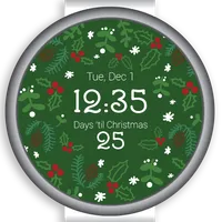 This fun Christmas themed watch face displays the day, date and time along with a countdown of the days until Christmas! There are 4 different color backgrounds for your watch face from which to choose. Press and hold the watch face and tap the gear icon to choose your favorite face color. Get 25 C