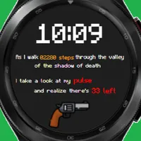 This is a text based watch face. Slick, cool, fun and inspiring! This watch face was made while listening to Coolio, being inspired by his verses.