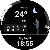 DS D011 is an animated weather watch face for Wear OS. Features¹: - Show/hide second progress bar; - Show/hide last weather update time; - 2 weather extra info option²: = Detailed; = Precipitation (next days). - Show/hide extra info background; - 3 character animation options: = On watch face