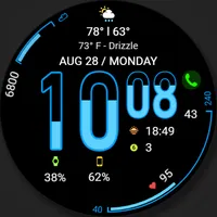 Digital watch face with hourglass function. The time digits show the battery charge of the watch and phone (you can change this to something else). The minutes digits show an animation of the seconds. You can use this feature, or turn it off, leaving either the numbers filled with color, or make the