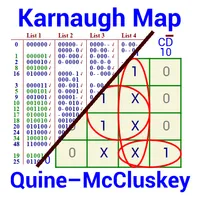 KMAP is the application to learn, practice and verify the use of the method for simplifying Karnaugh maps (aka table or Karnaugh Veitch diagram). To calculate the minimum solution or expression is based on the algorithm Quine-McCluskey. Solves systems 2 to 5 graphically variables, wherein for each
