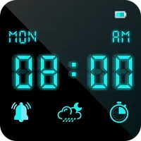 This app is a LED marquee sign style. It is a dock clock, desk clock and night clock application. No alarm No widget. It is big and simple. It is easy to use. It just shows you time(hour, minute, second) and date(month, day). You can also change text color and background color.