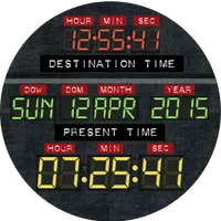 If you believe you can actually travel in time with this app, please seek medical attention :o) You may recognize the time travel dashboard from Pr Brown DeLorean in Back to the Future. In the lower section, this watch face displays 7 bits of information about current time. Current date (in green)