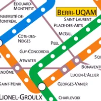 A simple scheme of the Montreal metro map, convenient for guests and tourists. Just a diagram, no search and no travel time between stations.