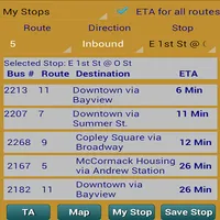 Bus Tracker With this app you don’t have to wait at the bus stop for the bus to come. It will tell you exactly when the bus will come to your stop. You can see the vehicles on the map as they move. You can configure your own ta. support following TA's MTA bus New York MBTA bus Massachusetts