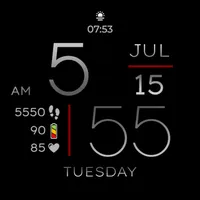 Simple but handy digital watch face for Wear OS devices (version 5.0+) with customizable colors (18x) and five (hidden) app shortcut slots. The watch face also includes one preset app shortcut (Calendar), one customizable complication slot as well as step count and heart rate measurement features. I