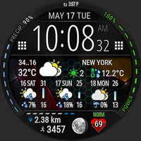 Watch face with weather forecast for 3 days, 25-hour forecast charts, 8 time symbol colors and 8 backgrounds. This watch face is available on devices running Wear OS 2.4 and 3+ (API 28+), primarily the Samsung Galaxy Watch 4/5/6 & Google Pixel Watch/2. Devises running Huawei Lite OS and Samsung Tiz