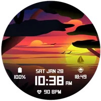 Sunset Landscape - Digital Watchface For Wear OS Feature : -Digital Clock -Date -HR -Battery (Complication Editable) -Sunset & sunrise (Complication Editable) -Background Variant *** The watch must be worn on the wrist for Health (HR) and Sports data to work *** HR display only shows last update