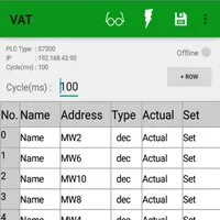 "PLC VAT" is a table for monitoring and modifying data value of PLC siemens just like "Variable Table"/VAT in step 7 simatic manager programming software. This tool is use when you want monitor or modify variable data value of remote PLC through WiFi. It is more practical using this table tool tha