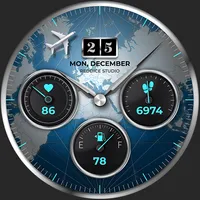 Premium Watch Faces for Wear OS – minimalist watch face with AOD mode! Designed with love by Red Dice Studio Navigate your day with SkyNav DSH6, an aviation-inspired hybrid watch face built for smartwatch users who love precision, travel, and technical style. Featuring a rotating airplane second-h