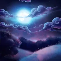 Hand-painted starlight vista by Anne Paetzke. Wispy clouds drift dreamily across a distant landscape while the silver moon glows in the twilight. Shooting stars, twinkling, and lots of options on the settings screen.
