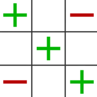 Another version of a Tic-Tac-Toe game. You take turns marking spaces with + and -, so you can play the game locally with your friend who would do every second turn on your screen.
