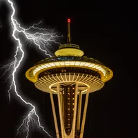 Amazing free live wallpaper! Panoramic view of the Elliott Bay skyline of the city of Seattle. The images have been taken from Kerry Park with beatiful views of the buildings including the Space Needle with the Mount Rainier behind. It has a wonderful storm with clouds, rain, very realistic thunder