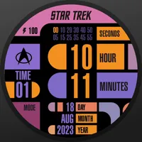 Library Computer Access/Retrieval System (LCARS) is a computer operating system within STAR TREK chronology. This interactive and animated watch face displays time, weather, activity, watch battery level, and has a stopwatch. Four interactive displays: - TIME (hrs., min., sec., day, month, year)