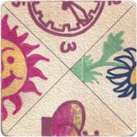 When my grandmother retired, her colleagues drew and gave her fortune-telling cards. twenty square cartons. On each face – half of the drawing. We put the cards in a row of five pieces and see where the drawings match. Then, on a piece of paper, we look at the value of the matched drawings. Over ti