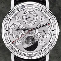 This model of a complex mechanical watch contains many of the most complex "complications" found in real watches, plus refinements found nowhere else. The displays maintain the look and feel of a real mechanical watch, but with considerably more complexity than possible in real mechanicals and with