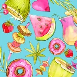 In this sticker app, you can browse and send summer-themed stickers featuring cocktails, palm trees, fruits, and calligraphic inscriptions. Includes a collection of 60 stickers, with options to browse categories and share via messaging platforms.