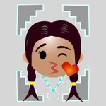 The Navajo Emojis Sticker App features male and female stylized Navajo emojis. It includes 17 animated emojis, 47 static (non-moving) emojis and 5 Navajo words (hello, bye, thank you). Females are featured wearing a traditional squash blossom necklace. Men are featured wearing a red, blue or white traditional headband. Some boys are wearing a turquoise necklace while sporting a modern haircut. The animated emojis are male and female with bulging love eyes, blinky eye with tongue sticking out, frowny face, teary eye, blinking cradle baby, and laughing so hard they cry. Static emojis include smiley face, heart kiss, nerd glasses, sunglasses, surprise face, sad face, crying stream, mad with head steam, orange face mad, green face sick, waaah crying, blushing, no gossip(jiníí), TTLY, Squad, Goals, Princess, thumbs up & down, and a woman's head with (tsiiyee) bun!
