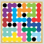 Arrange the four board wedges by yourself or roll the dice to pick a configuration. Then the fun begins. Twelve colored shapes appear. Your task is to fit the shapes into the board. Avoid the black/white spots as those are no-go areas.